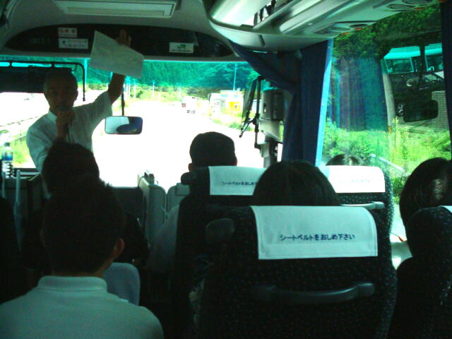 | 10:20 | 48名が乗車した大型観光バスで南三陸町へ(仙台東ICより三陸自動車道、桃生津山IC経由) 車内では、東北福祉大学地域共創推進室の千葉英俊先生により、車窓の説明や、被災地の被害状況の説明を受けた。JR気仙沼線沿いに国道45号線を戸倉地区へ |